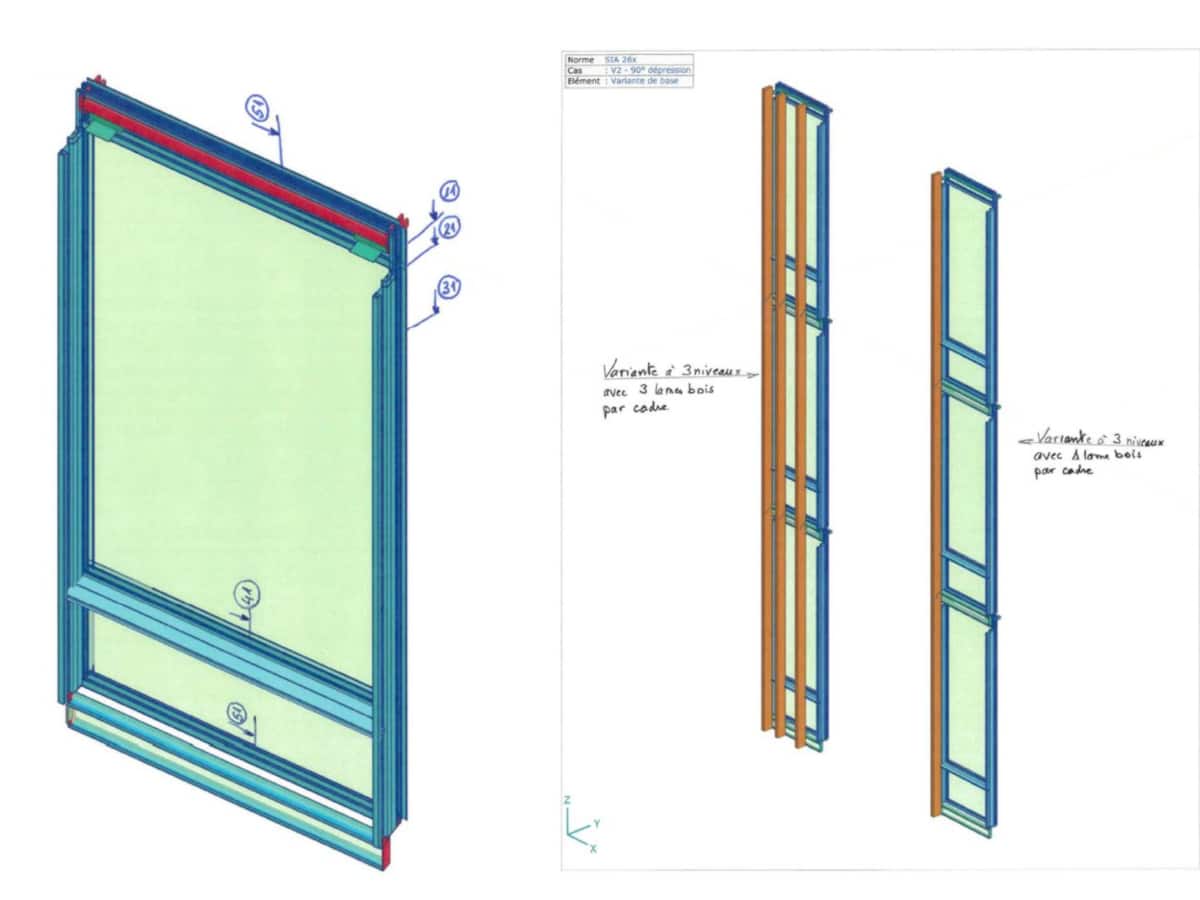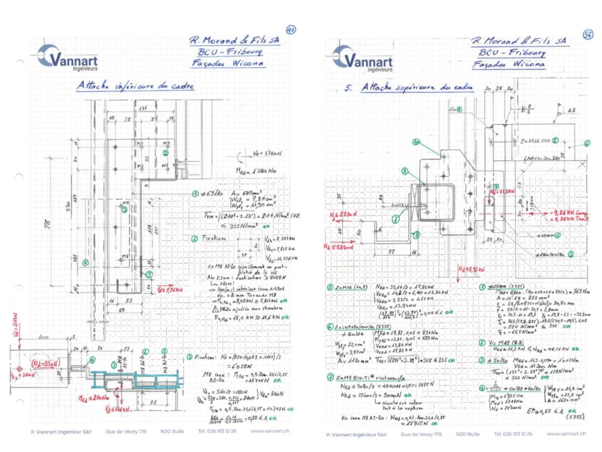 Conception statique, calculs et détails d’attache de la façade et de ses parements.